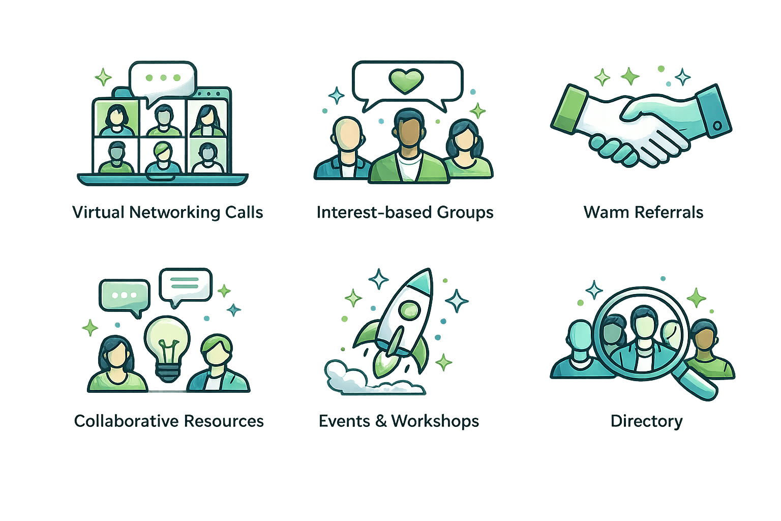Join any group that aligns with your interests. These calls are here to connect everyone on a deeper level and provide the opportunity to get to know the person behind the business.